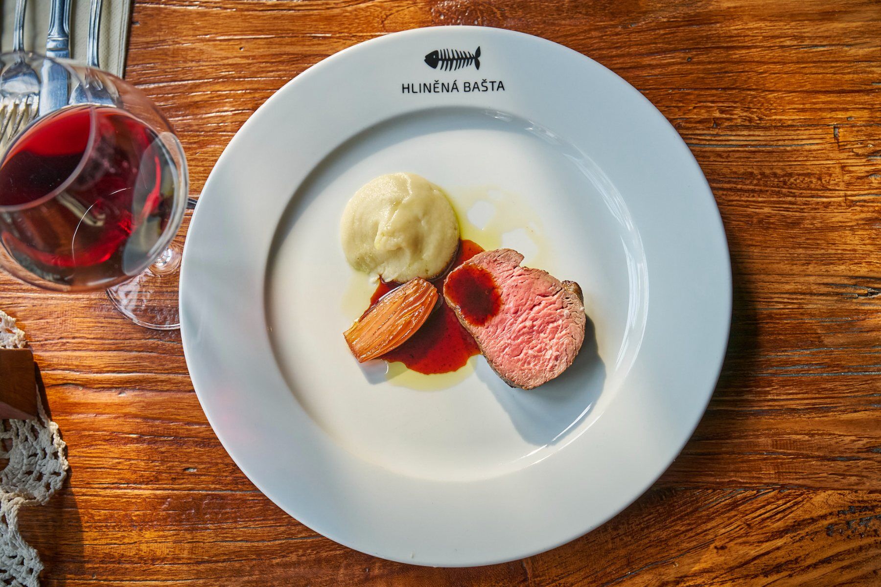 Filet mignon with smoked Jerusalem artichoke purée, truffle oil, marinated shallots and sauce Madeira with Kampot pepper and bourbon